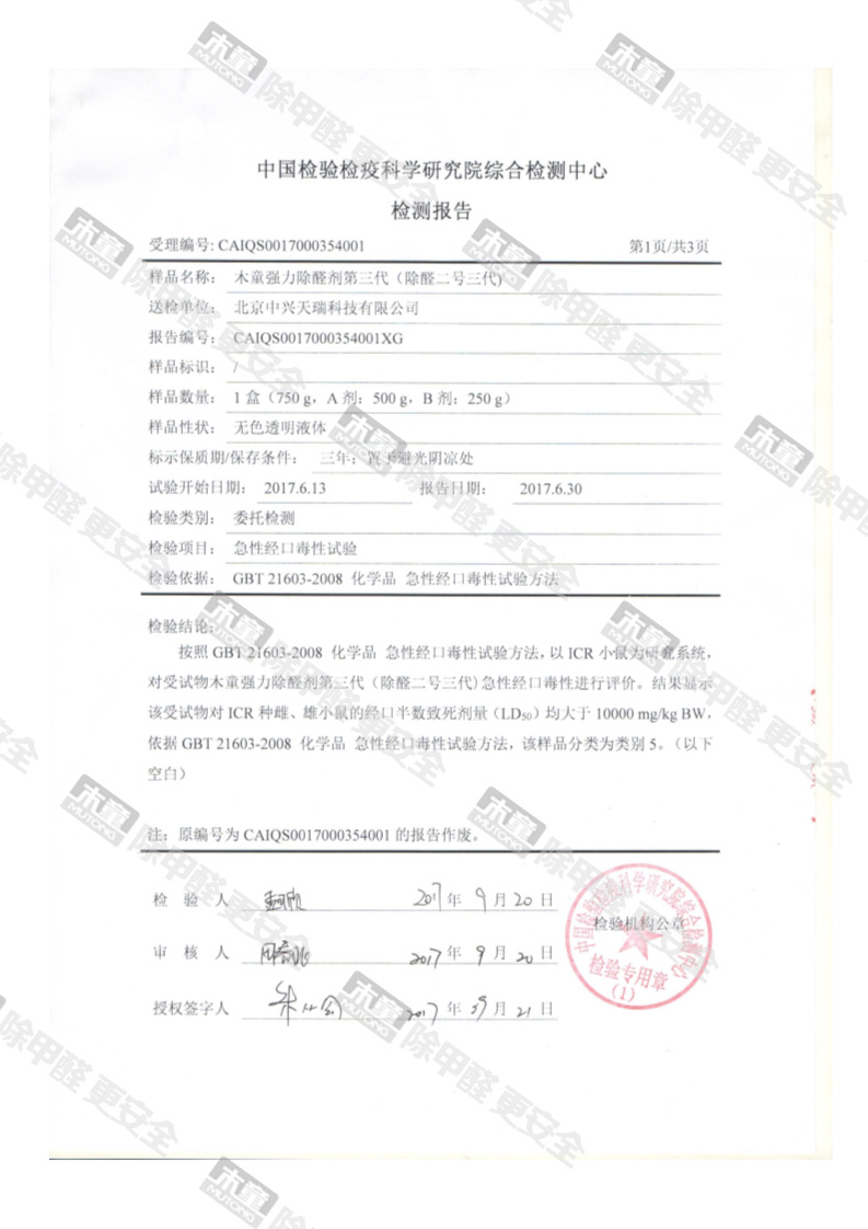 網(wǎng)站首頁(yè) - 產(chǎn)品中心- 檢測(cè)報(bào)告- 木童除醛2號(hào)三代安全性檢測(cè)報(bào)告